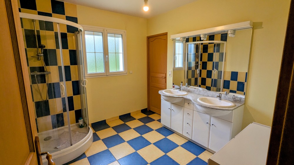 Idéalement situé dans le calme et joli bourg d'Eroudeville, sur une parcelle de 1200 m², je vous invite à venir découvrir ce joli pavillon de 2006, de type F5, offrant de belles pièces lumineuses et bien desservies. Ce grand plain-pied dispose d'une grande pièce de vie avec cuisine équipée et ouverte de 48.5 m², d'une arrière cuisine, d'un WC indépendant, d'une salle d'eau et de 3 grandes chambres. Un garage accolé, un grand appentis et un cabanon complètent l'ensemble.