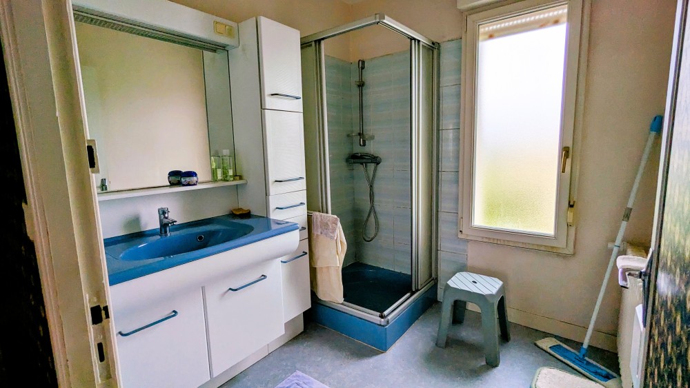 Le rez-de-chaussée est composé d'une entrée, d'un salon, d'une salle à manger, d'une cuisine, d'un WC indépendant et d'une buanderie avec une cabine de douche et son accès direct sur l'extérieur.